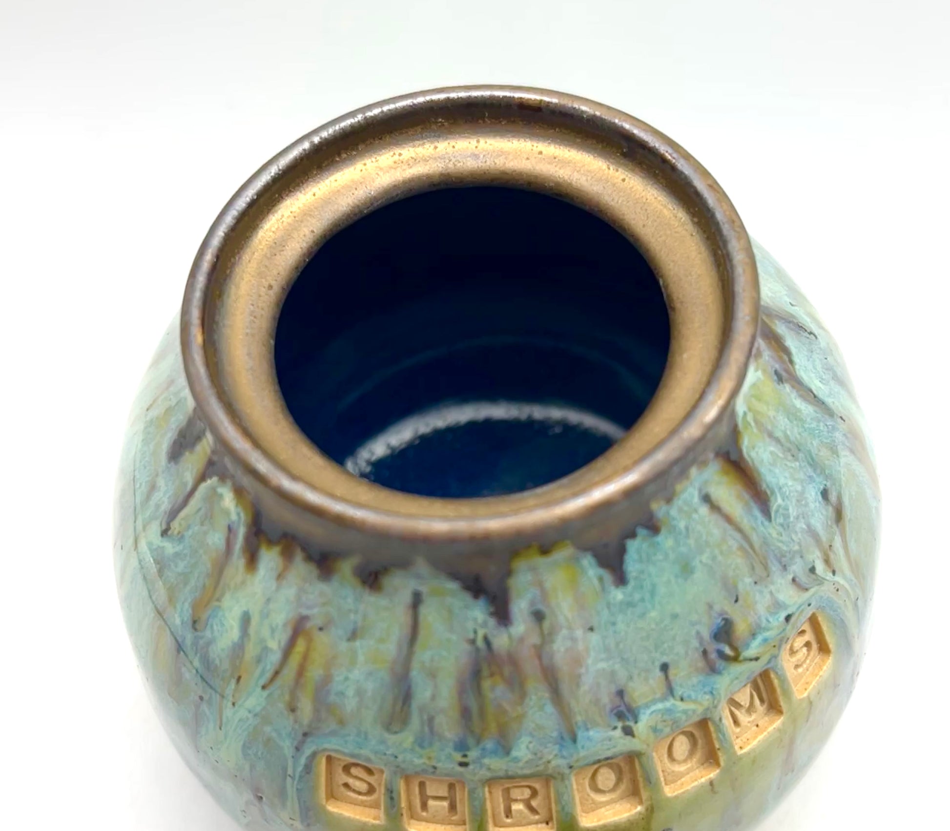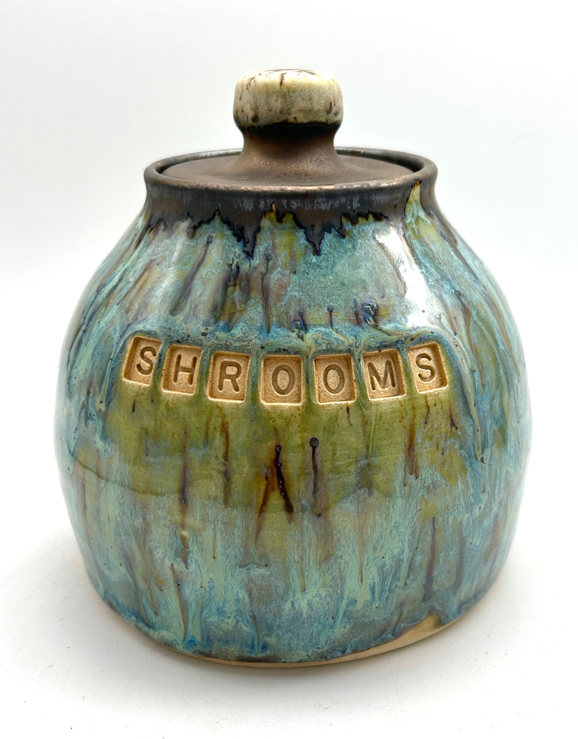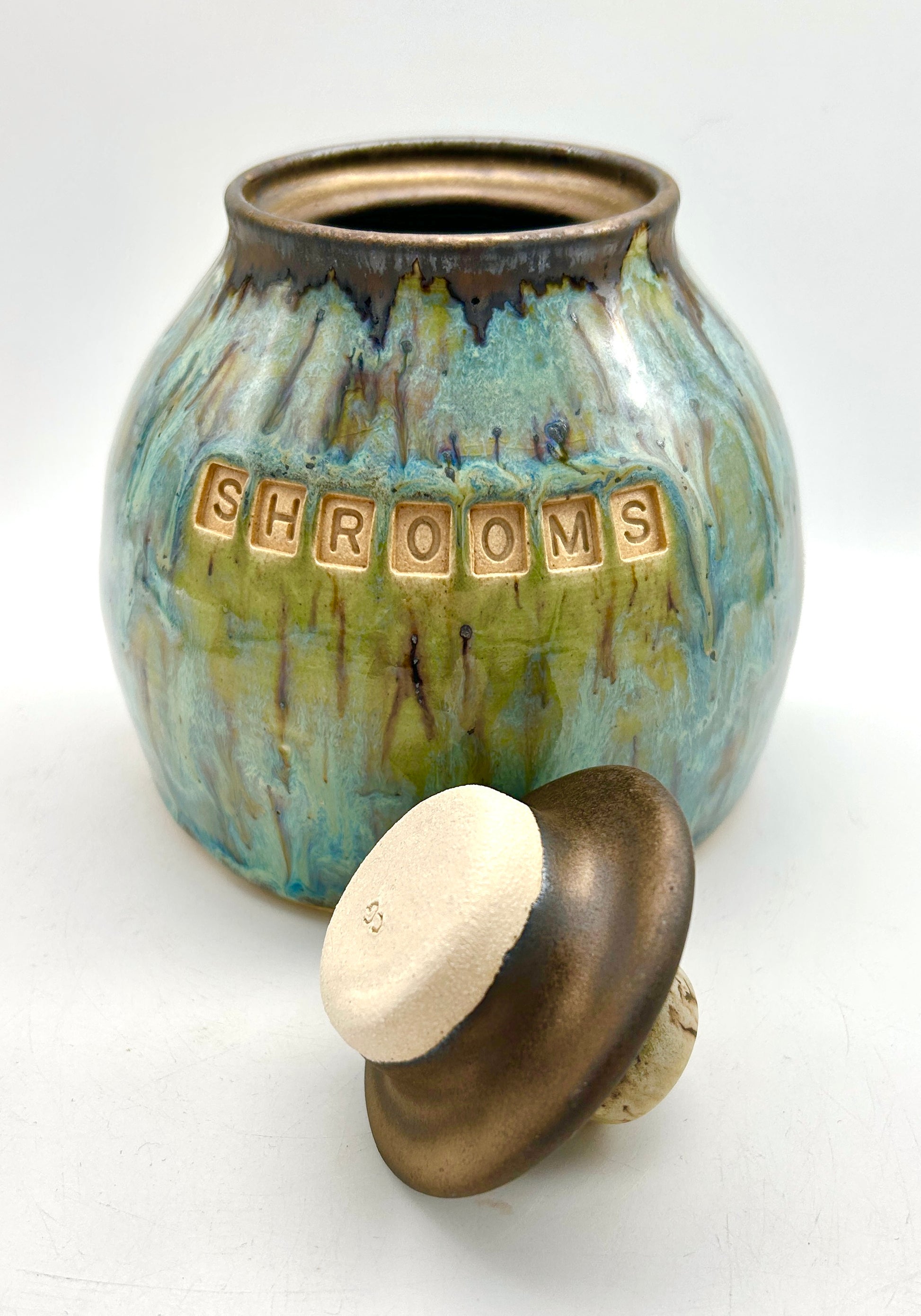 Check it out! This is a beauty. This 'shrooms' jar is for teabags, coffee, toiletries - anything you like.